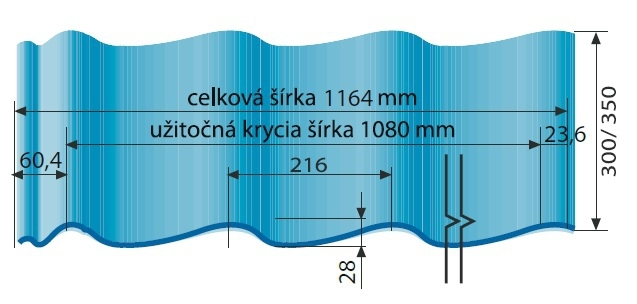 Najpredávanejší variant na trhu a najobľúbenejší typ strešnej krytiny. Profil už svojim názvom dokonale vystihuje svoju tvarovú nezameniteľnosť - profily vĺn. Aplikácia na strechy je možná od sklonu 8° (ak nie sú potrebné priečne spoje), 14° v prípade priečnych spojov.
